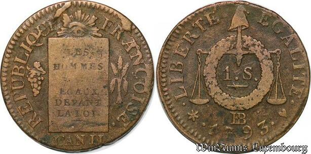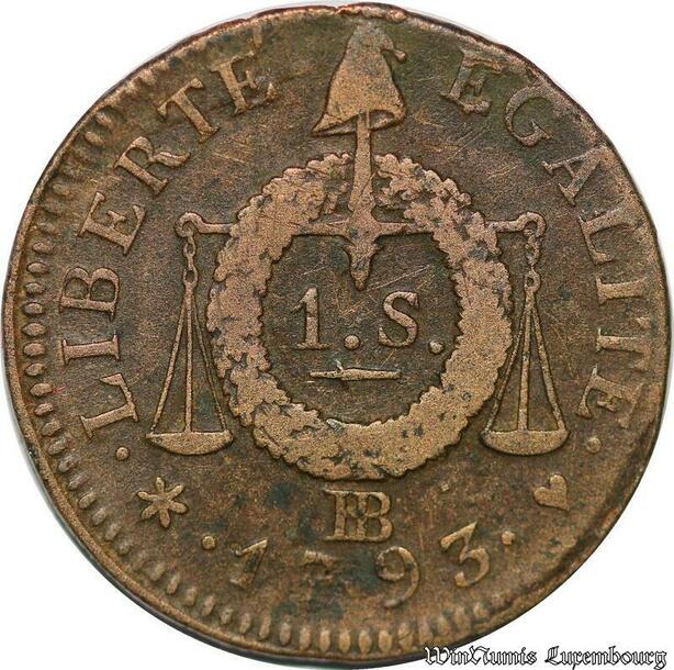 S5679 Rare France Convention 1 Sol aux Balances 1793 BB Strasbourg - Faire Offre