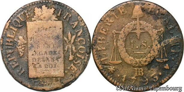 S5680 Rare France Convention 1 Sol aux Balances 1793 BB Strasbourg - Faire Offre