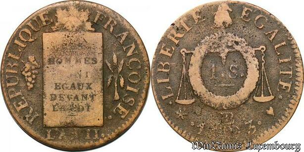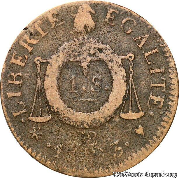 S5682 Rare France Convention 1 Sol aux Balances 1793 BB Strasbourg - Faire Offre