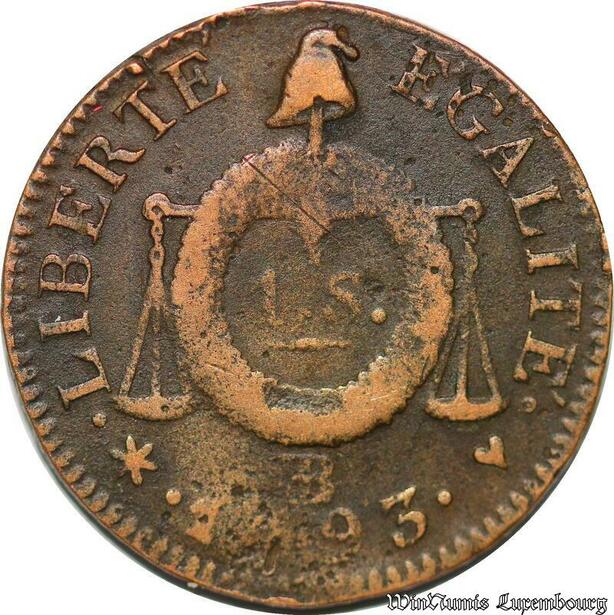 S5686 Rare France Convention 1 Sol aux Balances 1793 BB Strasbourg - Faire Offre