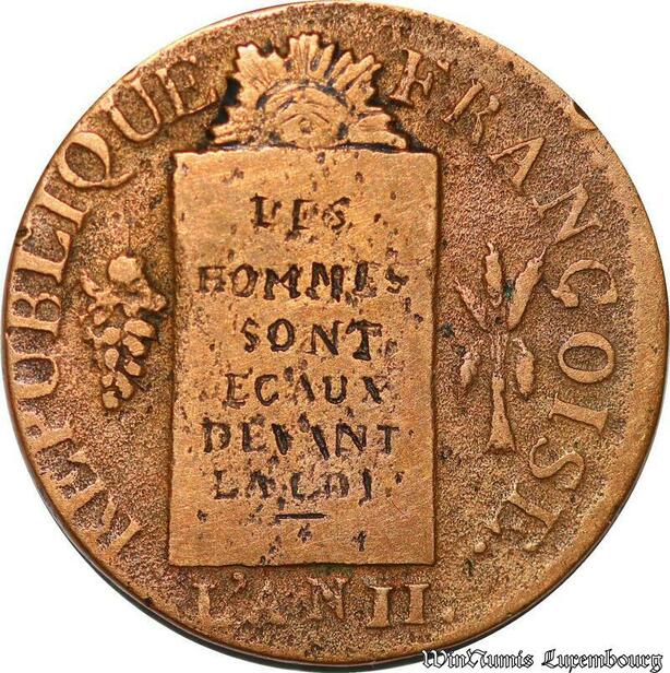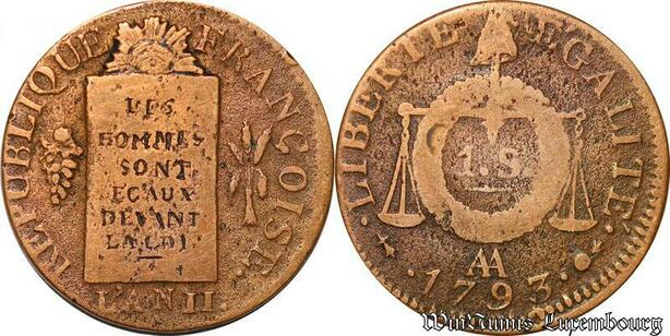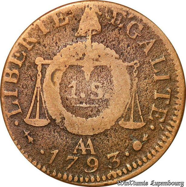 S5687 Rare France Convention 1 Sol aux Balances 1793 AA Metz Table 100% lisible