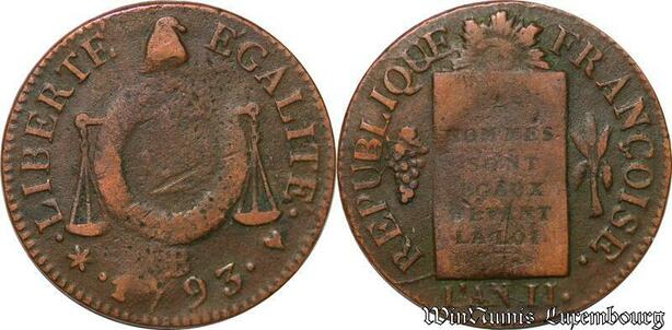 S5688 Rare France Convention 1 Sol aux Balances 1793 BB Strasbourg - Faire Offre
