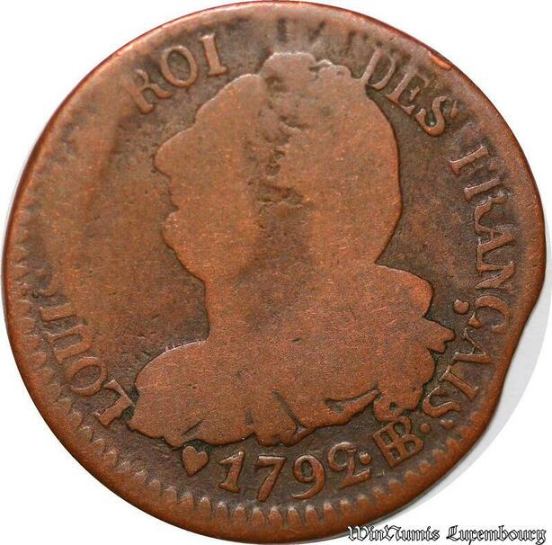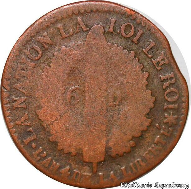 S5721 Rare Constitution 6 Deniers Louis XVI 1792 BB Strasbourg - Faire Offre