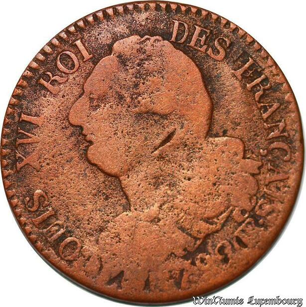 S5750 Rare Constitution 6 Deniers Louis XVI 1792 BB Strasbourg - Faire Offre