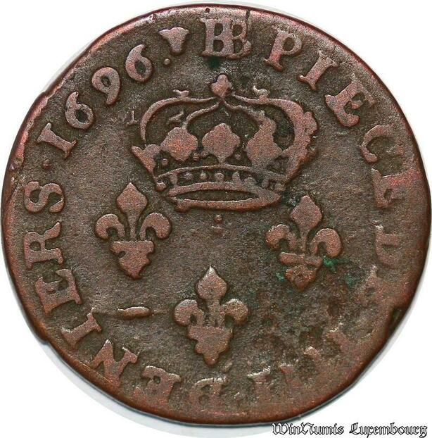 S5795 Rare 4 Deniers Louis XIV 1696 BB Strasbourg - Faire Offre