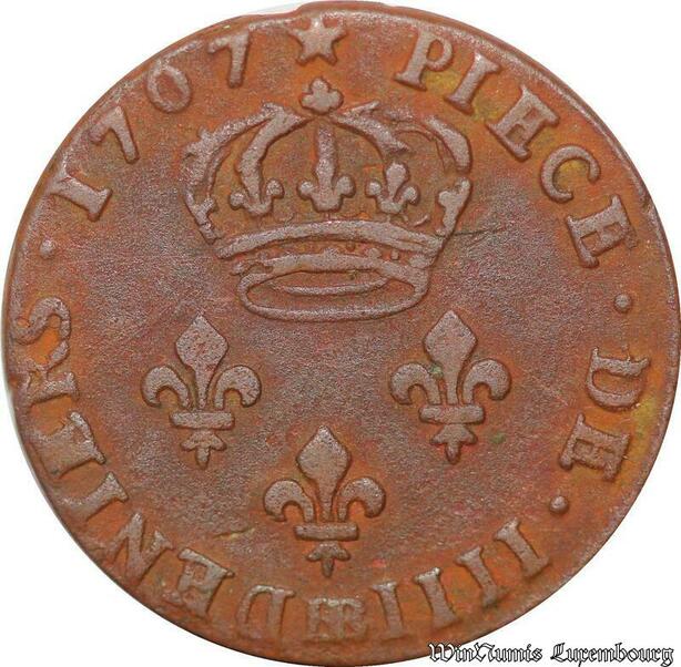 S5811 4 Deniers Louis XIV 1707 BB Strasbourg - Faire Offre