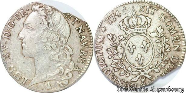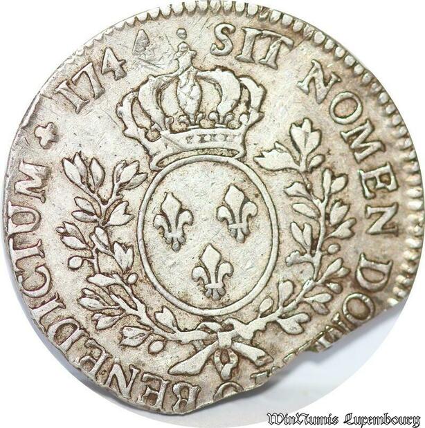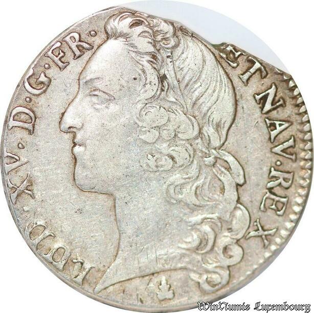 S5836 Rare France Fauté 1/2 Ecu Louis XV 1744 O Rioms Flan coupé TTB ! Argent