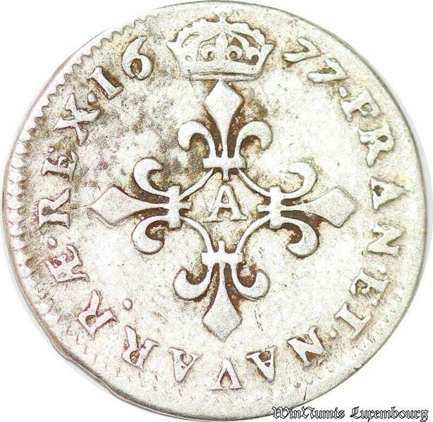 S5883 Rare 4 Sols aux traitants Louis XIV 1677 A Paris Silver ! >M offer