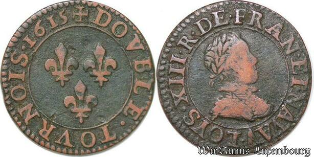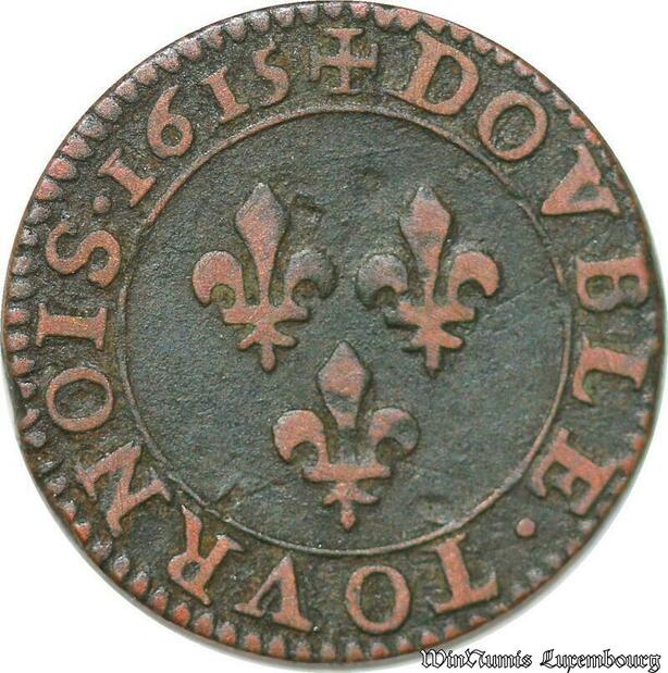 S5900 Louis XIII Double tournois, type 1 1615 A Paris Moulin du Louvre