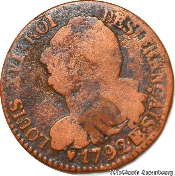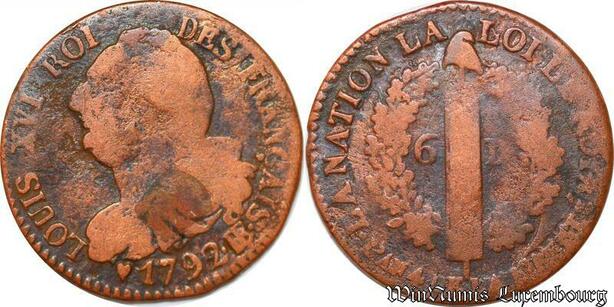 S5906 6 Deniers Louis XVI 1792 BB Strasbourg An 4 Type Francais- Faire Offre