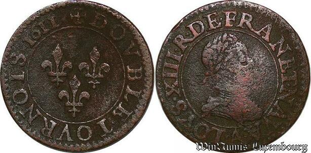 S5957 Louis XIII 1610-1643 Double tournois 1611 A Paris ->Faire Offre