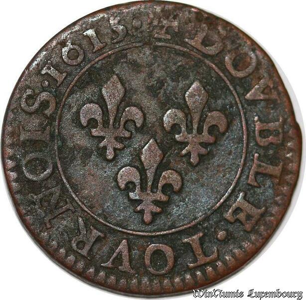 S5988 Rare Double Tournois Louis XIII 1615 A Paris Moulin De Paris
