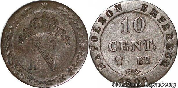 S6246 10 Centimes à L'N couronnée1809 BB Strasbourg ->Faire Offre