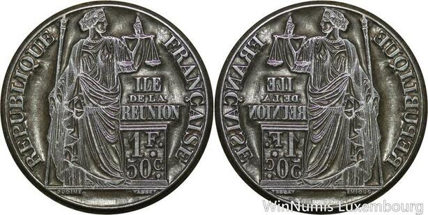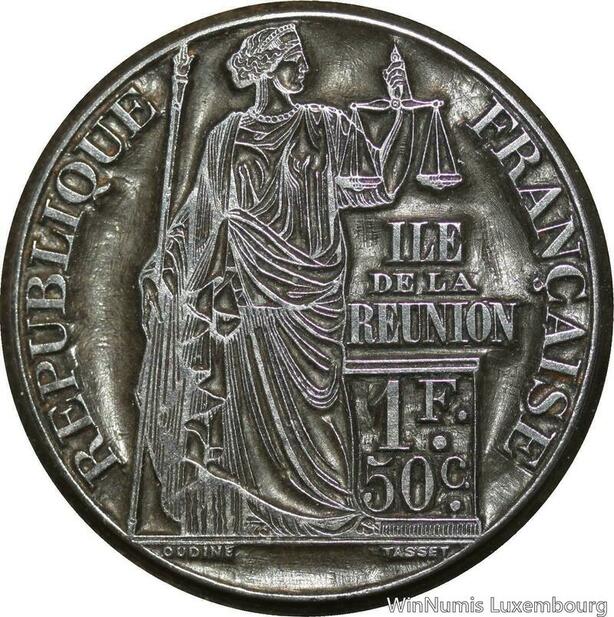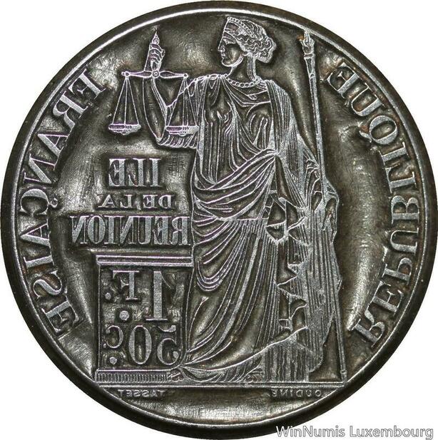 S8787 Unique Matrice Colonie La Réunion Bourbon 1 Franc 0,50 Cts Oudiné 1860 's