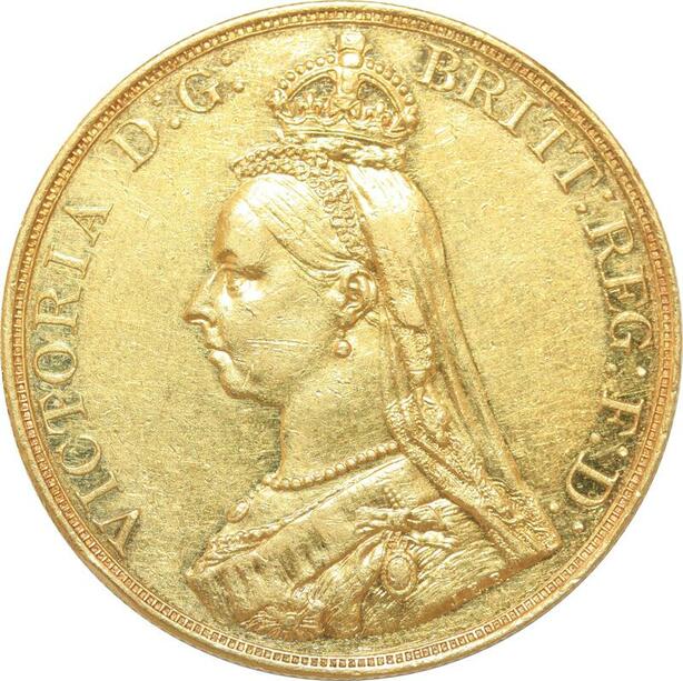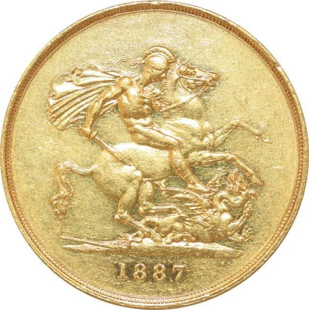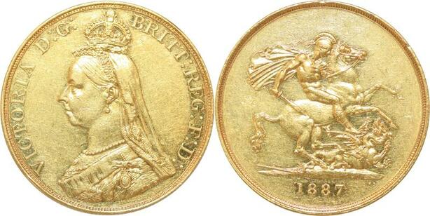 AA589 Rare UK Sovereign 5 Pounds Victoria Jubilee 1887 London Or Gold AU