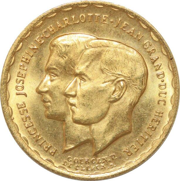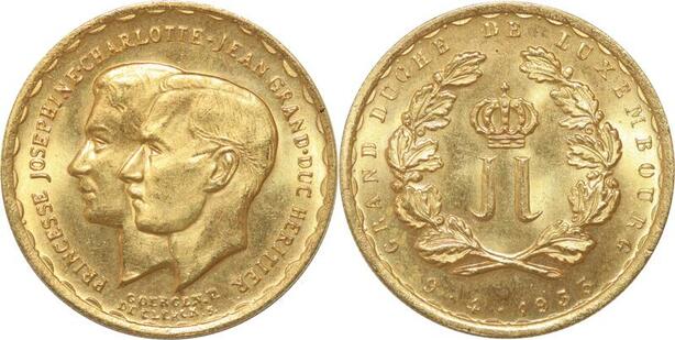 AA597 Rare Luxembourg 20 Francs Joséphine Charlotte Jean 1933 Or Gold UNC