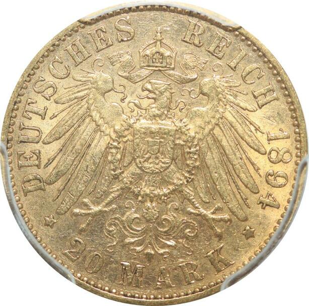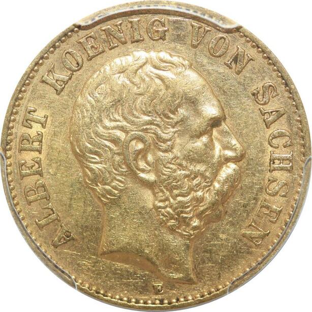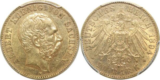 AA617 Rare Germany Saxony 20 Mark Albert 1894 E Or Gold PCGS AU55 -> Offer