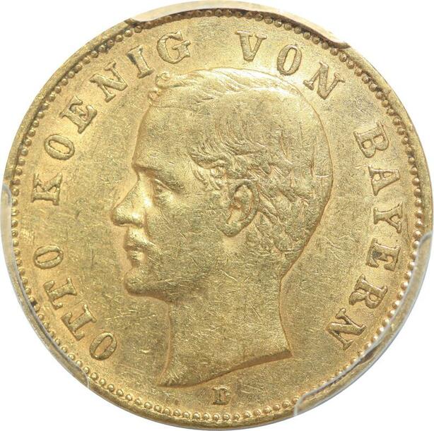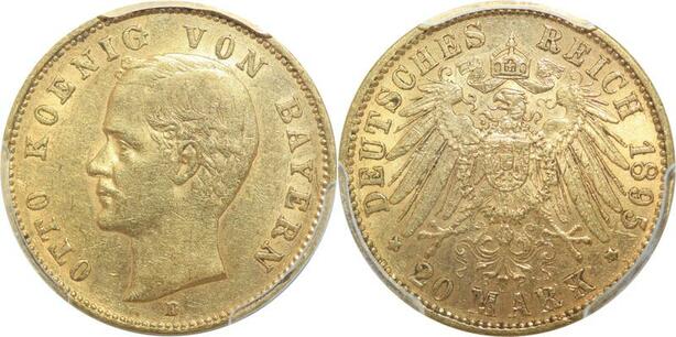 AA620 Rare Germany Bavaria 20 Mark Otto 1895 D Or Gold PCGS AU53 -> Make Offer