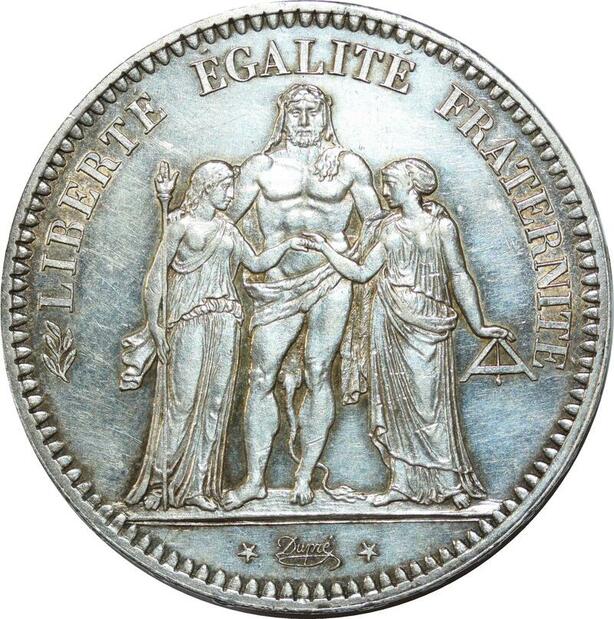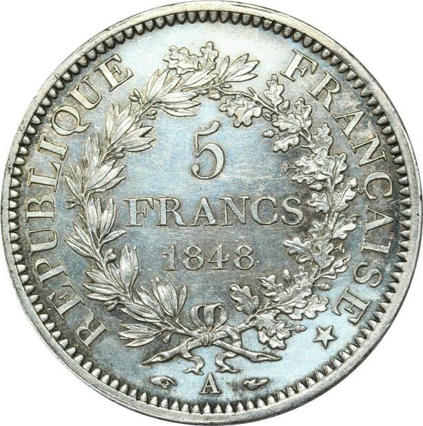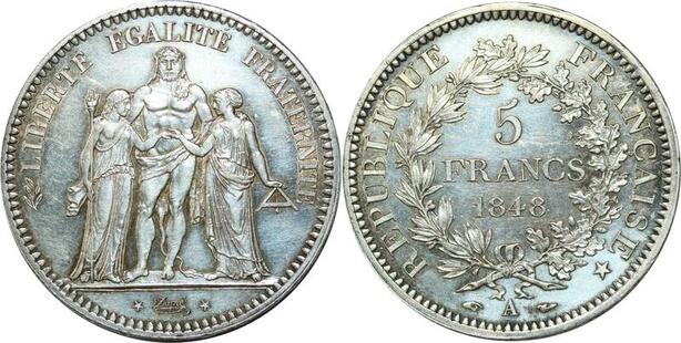 O867 France Rare 5 Francs Hercule 1848 A Paris Argent Silver Prooflike PF