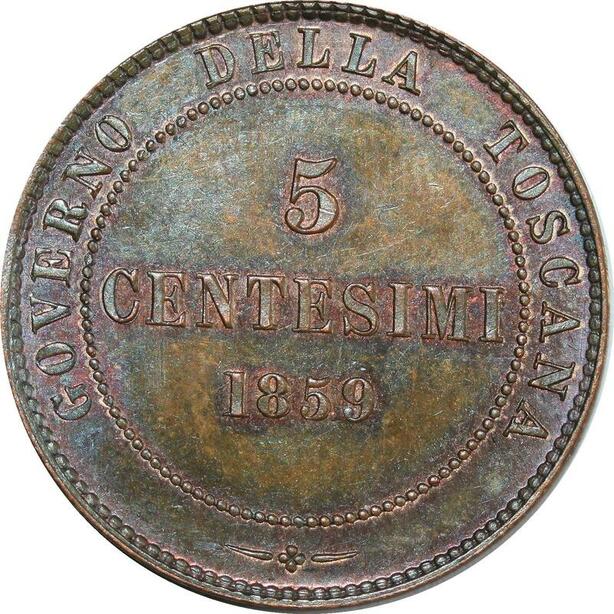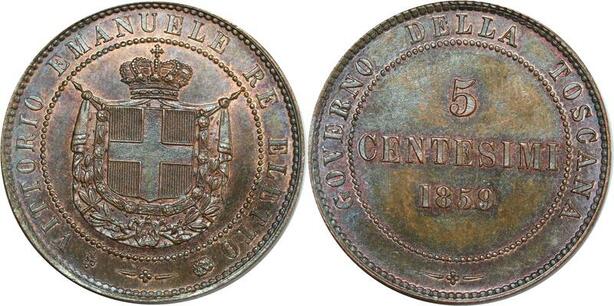 O8004 Italian States Tuscany 5 Centesimi 1859 PCGS MS63 ->M offer