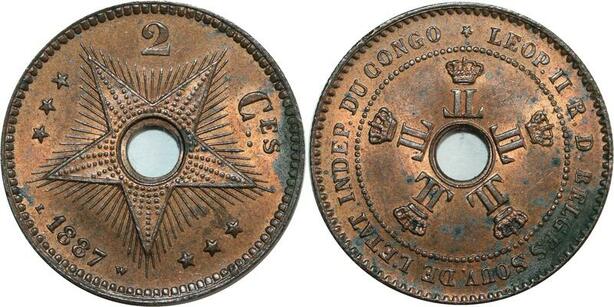 O8031 Congo Free State 2 Centimes Léopold II 1887 UNC !!!