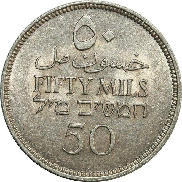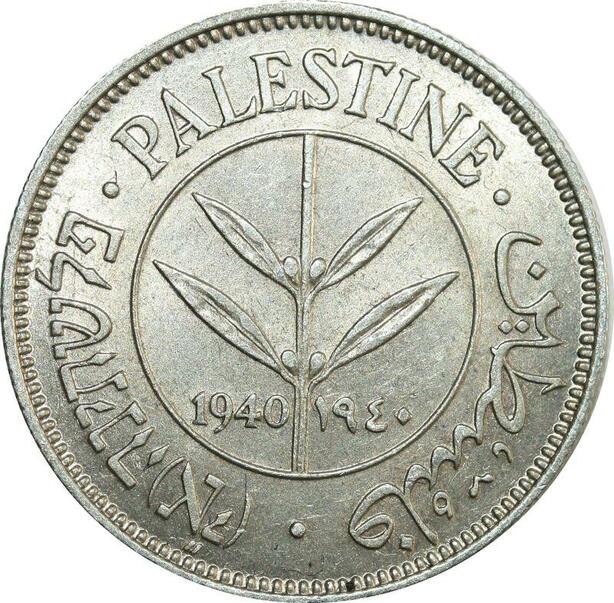 O8036 Scarce Palestine 50 Mils 1940 Silver UNC ->Make offer
