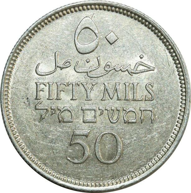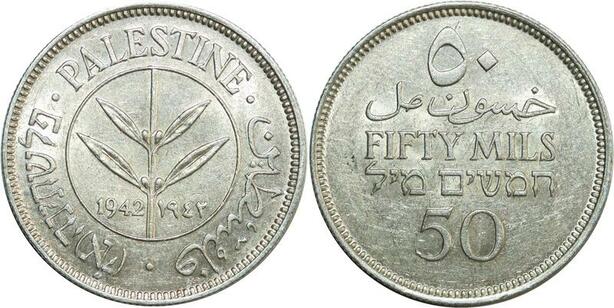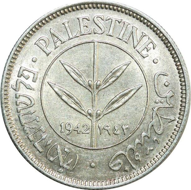 O8038 Scarce Palestine 50 Mils 1942 Silver UNC ->Make offer
