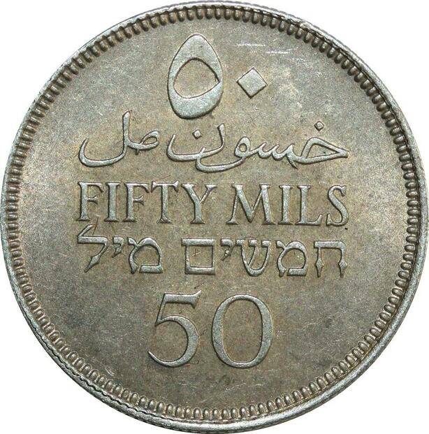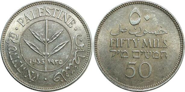 O8040 Scarce Palestine 50 Mils 1935 Silver AU ->Make offer