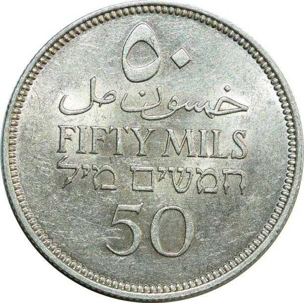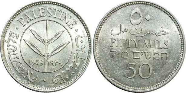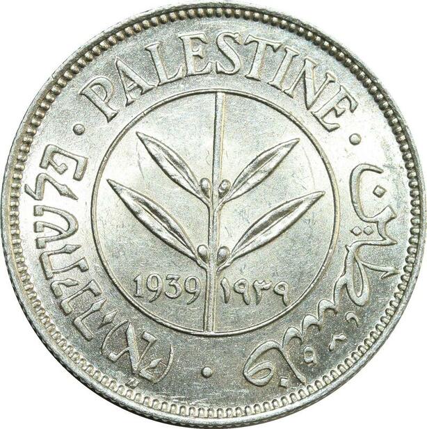 O8041 Scarce Palestine 50 Mils 1939 Silver UNC ->Make offer