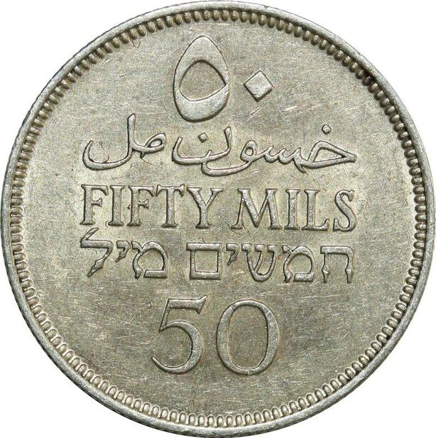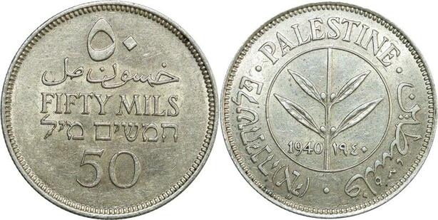 O8042 Scarce Palestine 50 Mils 1940 Silver UNC ->Make offer