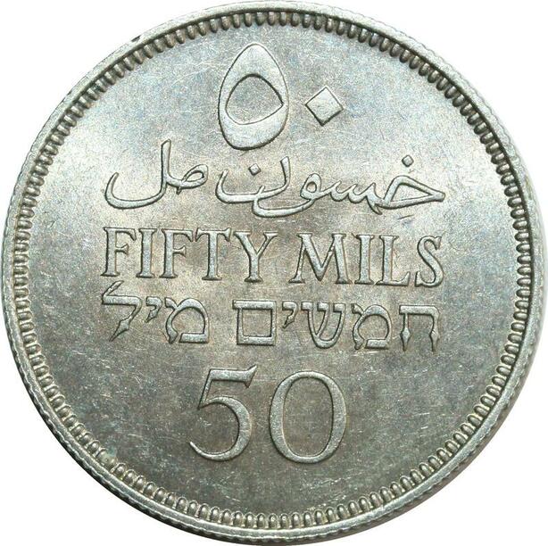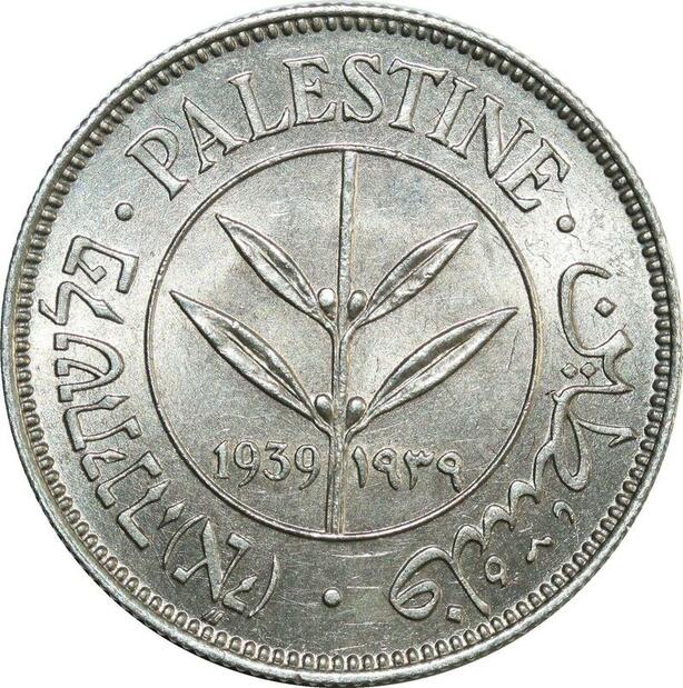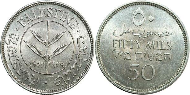O8044 Scarce Palestine 50 Mils 1939 Silver UNC ->Make offer