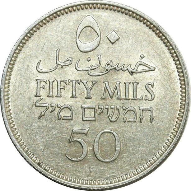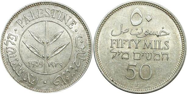 O8045 Scarce Palestine 50 Mils 1939 Silver UNC ->Make offer