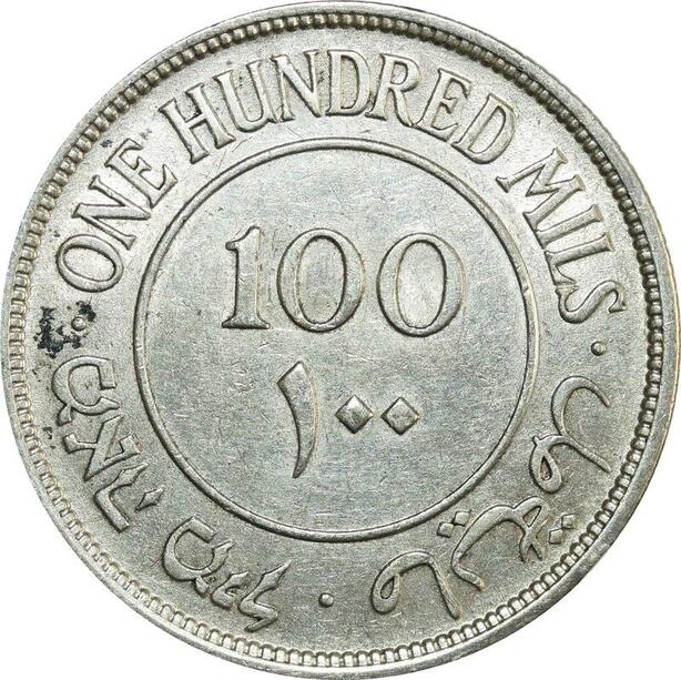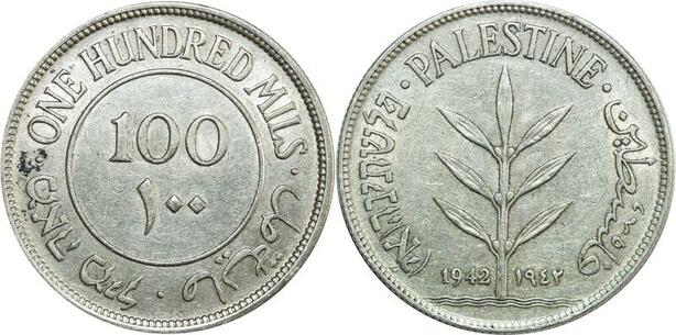 O8052 Scarce Palestine 100 Mils 1942 Silver AU ->Make offer