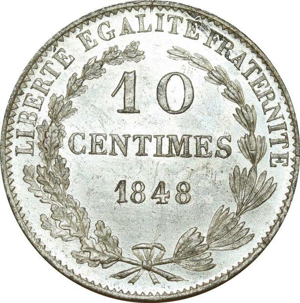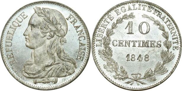 O8089 TOP POP France 10 Centimes Essai Concours Montagny 1848 PCGS SP65