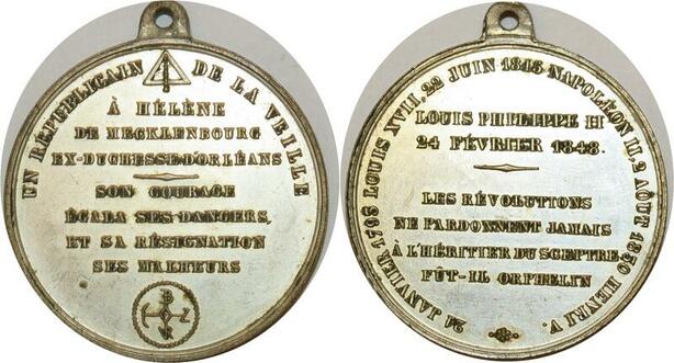 O8117 Inedite Médaille Hélène Mecklenbourg ex-duchesse Orléans 1848 SUP