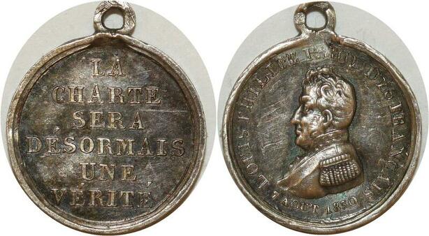O8149 Rare Médaille Louis-Philippe Roi Charte vérité 1830 Argent SUP