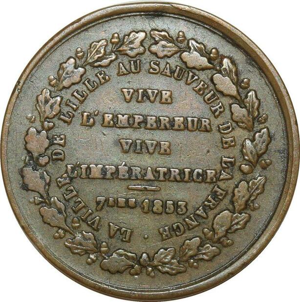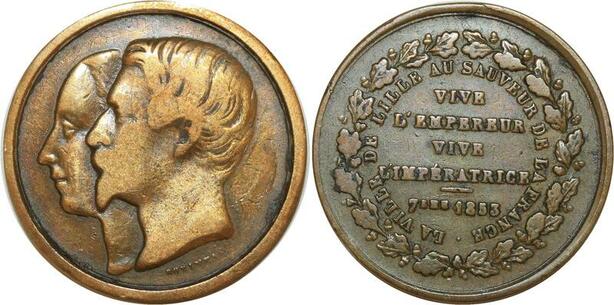 O8173 Médaille Napoléon III Eugénie Ville Lille Sauveur 1853 ->Make offer