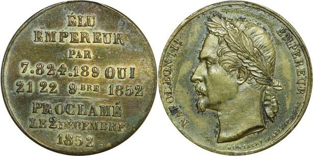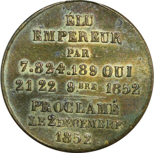 O8197 Rare Médaille Napoléon III Elu Empereur 7 millions de voix en 1852 SUP