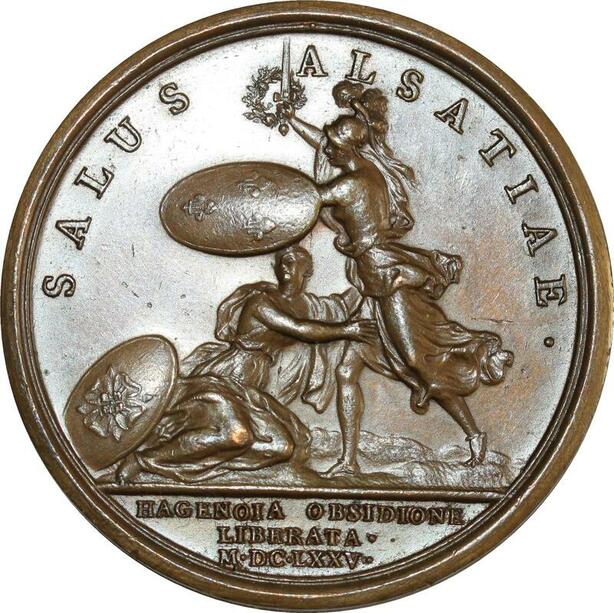 O8226 Rare Médaille Louis XV Levée Siège Haguenau Alsace 1675 Mauger SUP