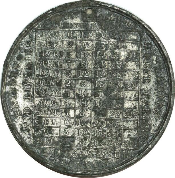 O8238 Medal Great Britain Medal London 1850 calendar E. Moses & Son Isaac