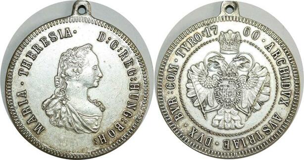 O8240 Austrian Medal Archiduchesse Marie Therese 1760 Silvered AU Superbe