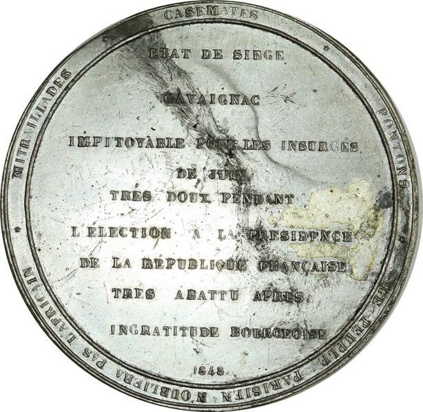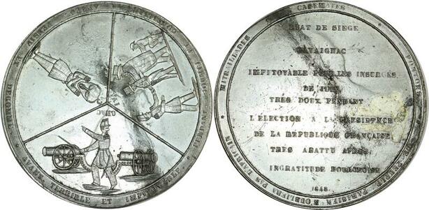 O8279 Rare Médaille Etat de Siège Fin Pouvoir Général Cavaignac 1848 78mm