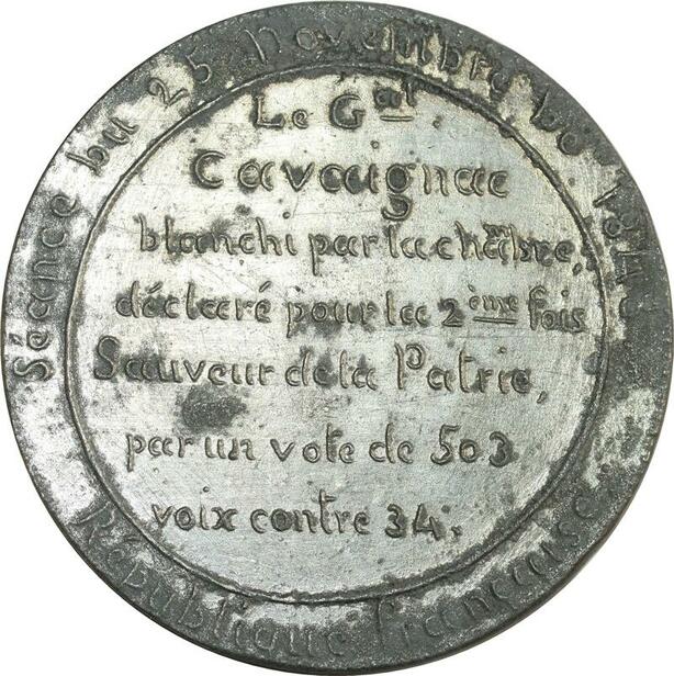 O8281 Rare Médaille Révolution 1848 Général Cavaignac blanchi 503 / 34 voix