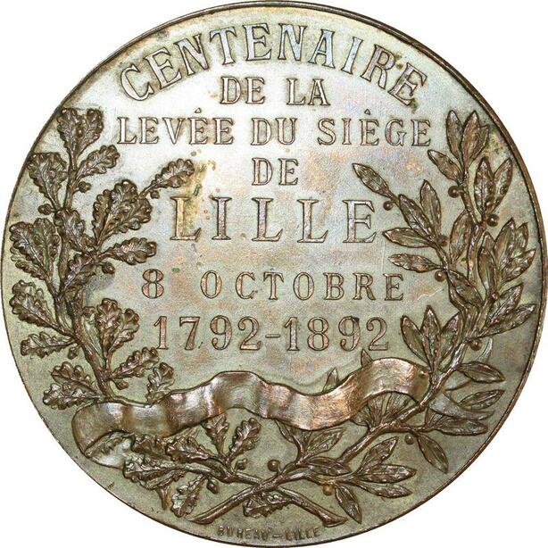 O8297 Médaille Centenaire Levée siège Lille 1792 1892 SUP