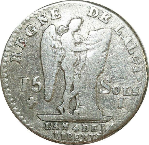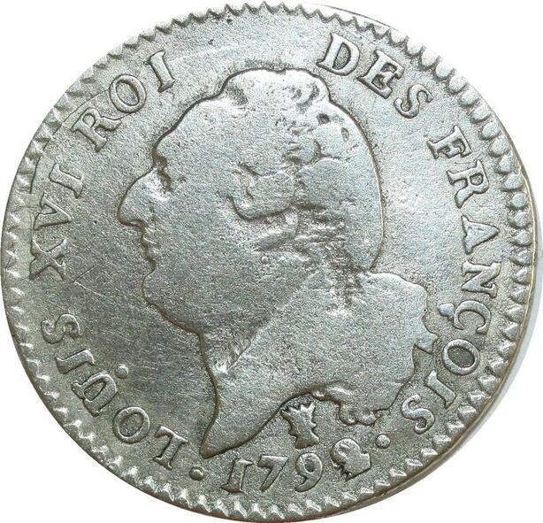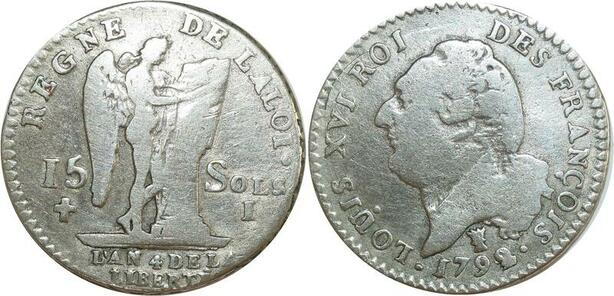 O8326 Rare France Constitution variété 15 Sols Louis XVI An 4 1792 Double 2 Limoges 2nd s.