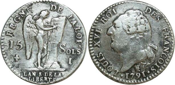 O8327 France Constitution 15 Sols François An 3 1791 I Limoges 2eme s. argent