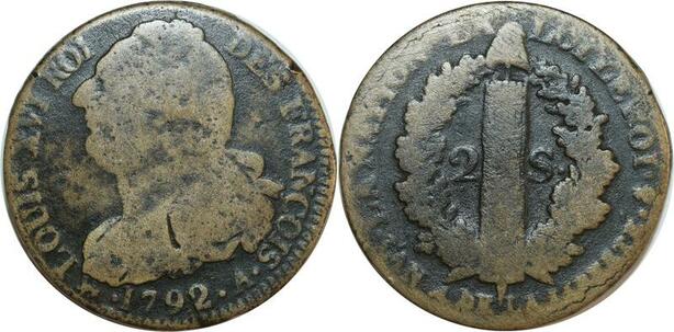 O8333 France Constitution 2 Sols Louis XVI Faisceau François An 4 1792 A Paris