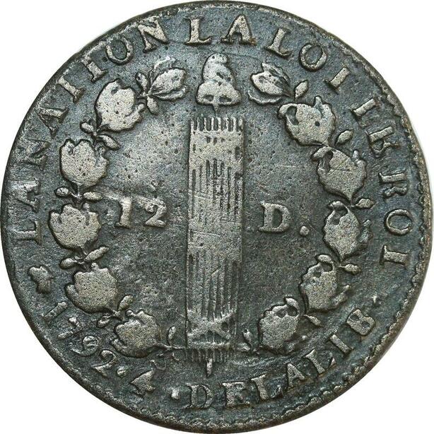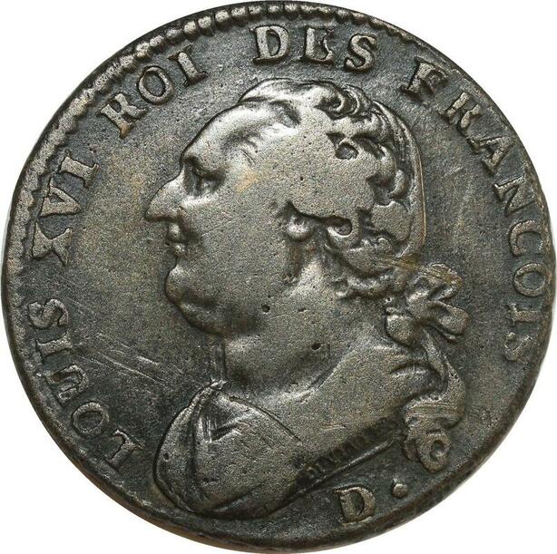 O8342 Rare France Constitution 2 Sols Louis XVI An 4 François 1792 D. Dijon