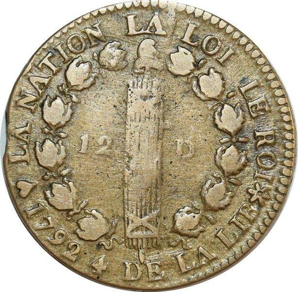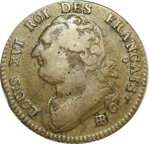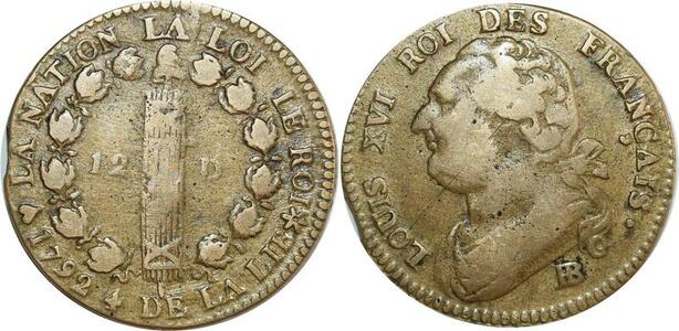 O8343 Rare France Constitution 2 Sols Louis XVI An 4 Francais 1792 BB Strasbourg