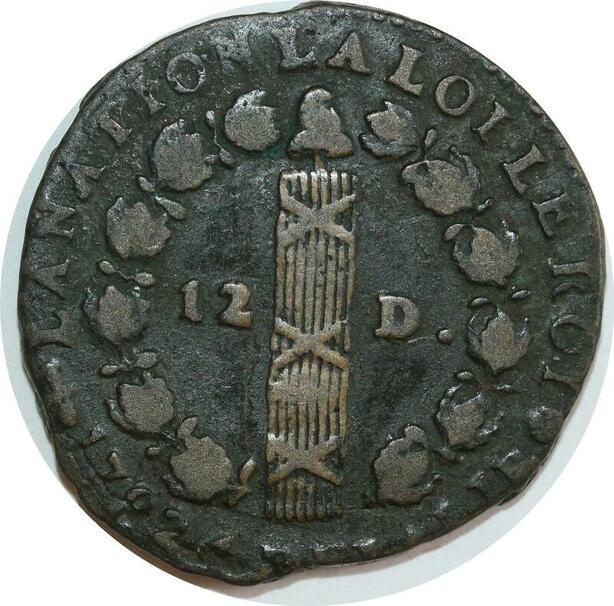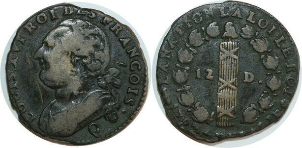 O8346 Rare France Constitution 2 Sols Louis XVI François An 4 1792 Q Perpignan
